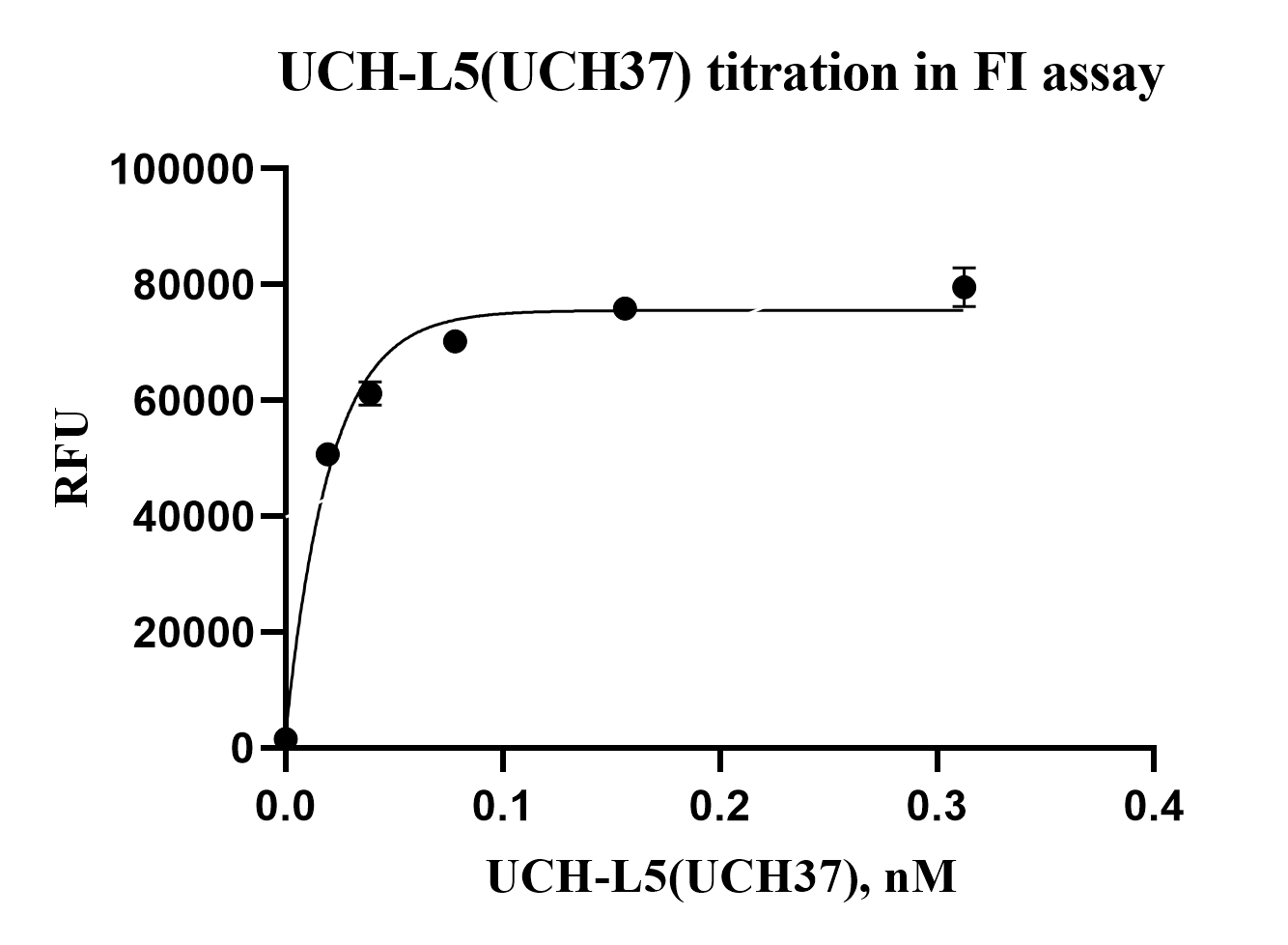 Activity Identification:The UCH-L5(UCH37) activity was detected by cleaving the fluorogenic peptide substrate in FI assay. The reaction was performed by incubating the UCH-L5(UCH37) protein and substrate at 25℃ for 60 min, then reading RFU with BMG.
