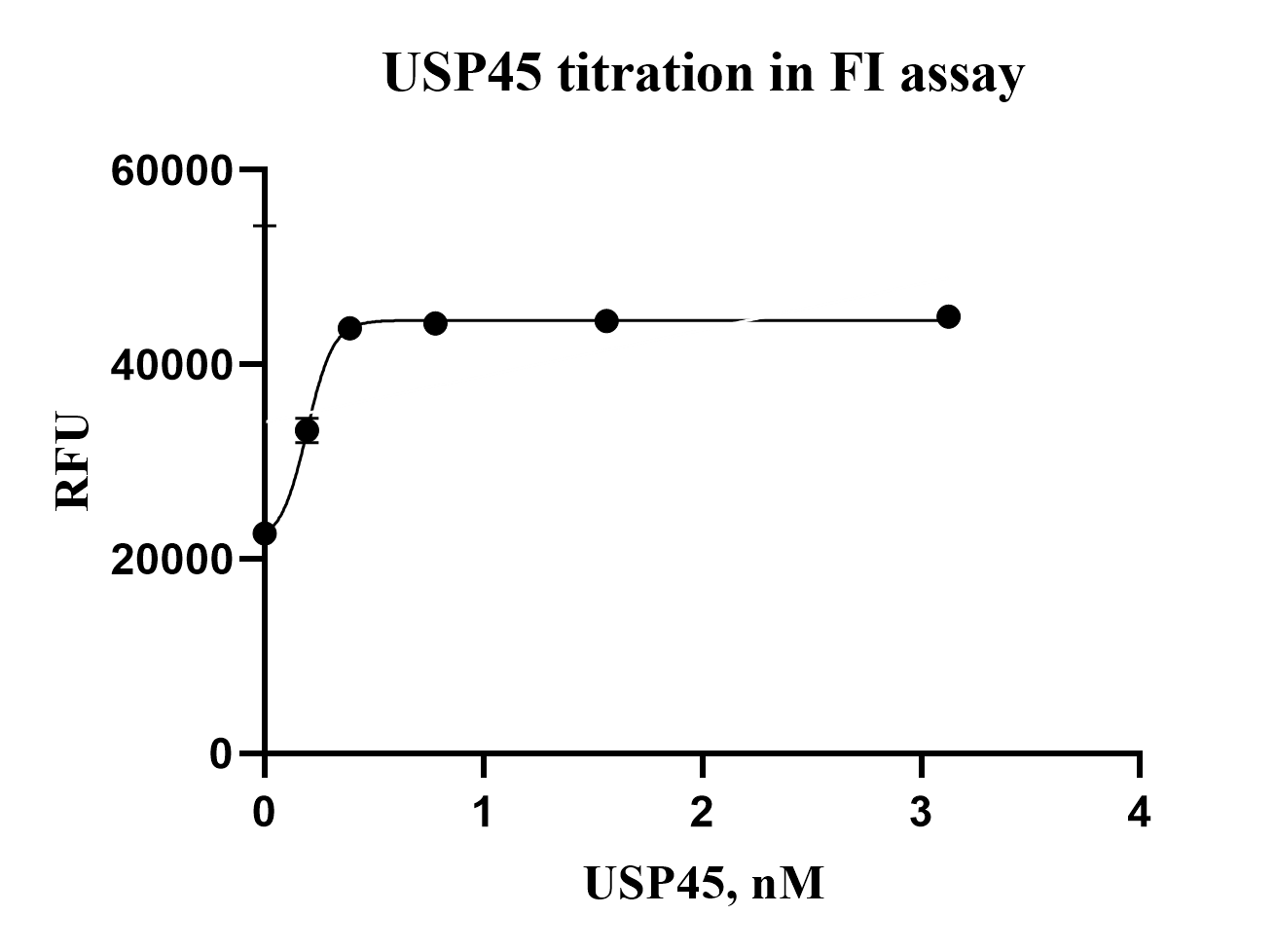 Activity Identification:The USP45 activity was detected by cleaving the fluorogenic peptide substrate in FI assay. The reaction was performed by incubating the USP45 protein and substrate at 25℃ for 60 min, then reading RFU with BMG.