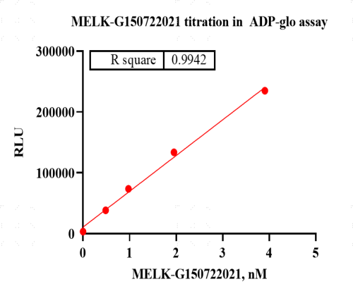 Activity Identification:The MELK activity was quantified using the ADP-Glo™ assay. The reaction was performed by incubating the MELK protein, ATP and substrate at 25℃ for 60 min, adding ADP-Glo reagent and then measuring luminescence signal on BMG.