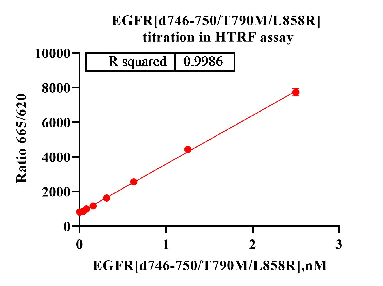 Description:Recombinant human EGFR[d746-750/T790M/L858R] protein with N-terminal GST tag was purified by GST affinity and followed by SEC chromatography. The EGFR[d746-750/T790M/L858R] protein showed high activity in HTRF assay.