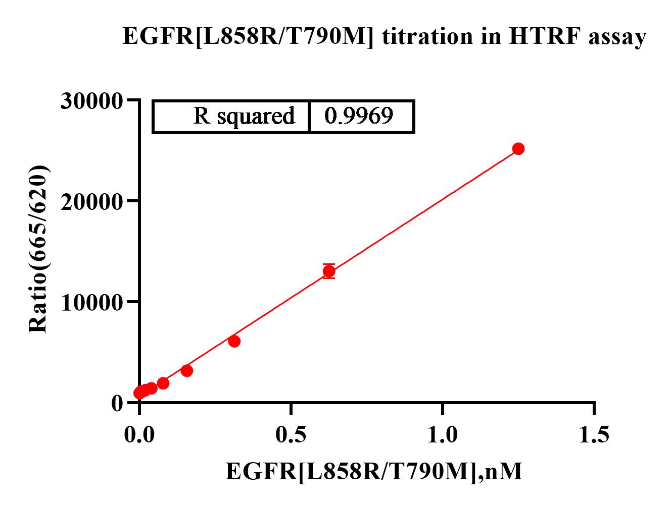 Description:Recombinant human EGFR[L858R/T790M] protein with N-terminal GST tag was purified by GST affinity. The EGFR[L858R/T790M] protein showed high activity in HTRF assay.