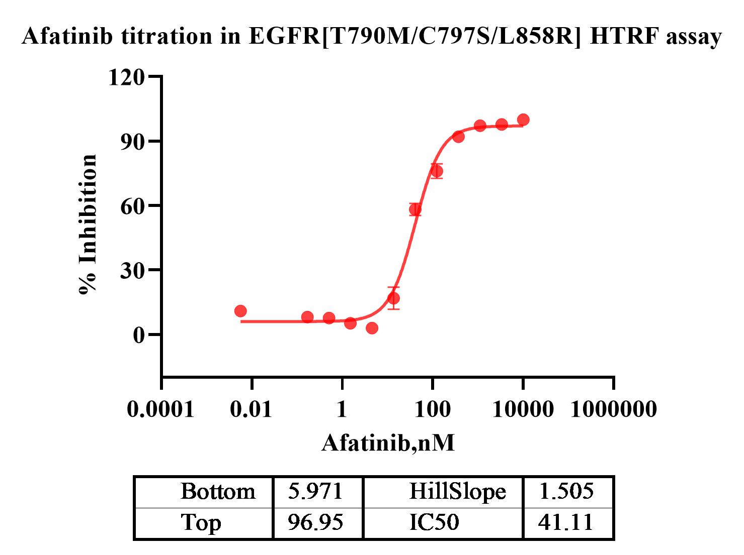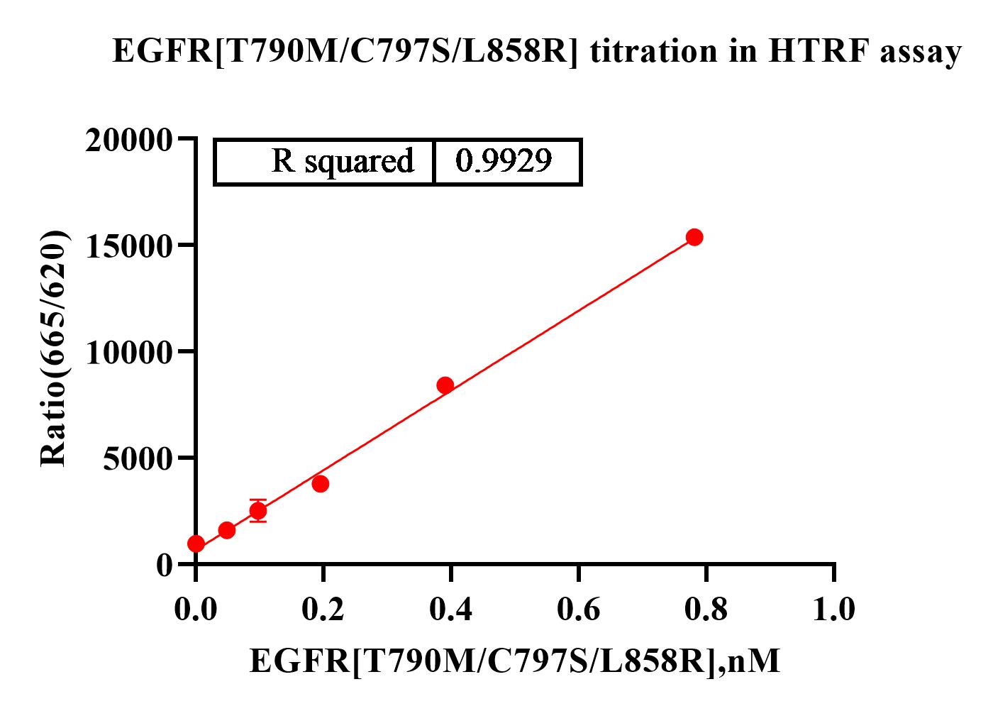 Description:Recombinant human EGFR[T790M/C797S/L858R] protein with N-terminal GST tag was purified by GST affinity. The EGFR[T790M/C797S/L858R] protein showed high activity in HTRF assay.
