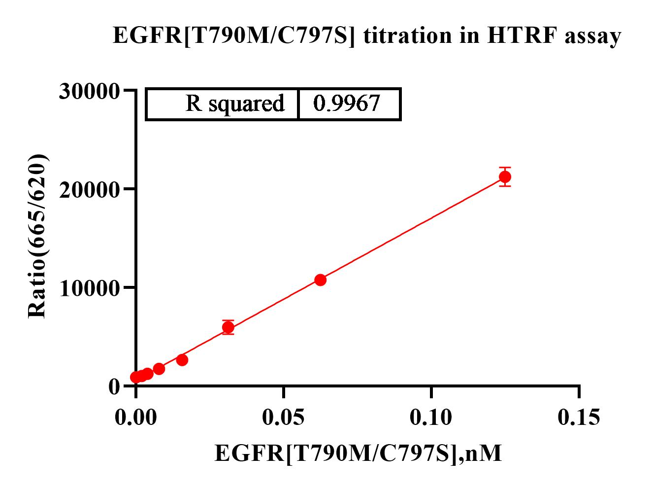 Description:Recombinant human EGFR[T790M/C797S] protein with N-terminal GST tag was purified by GST affinity and followed by SEC chromatography. The EGFR[T790M/C797S] protein showed high activity in HTRF assay.