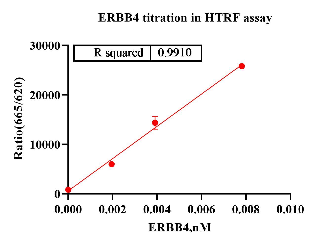 Description:Recombinant human ERBB4 protein with N-terminal GST tag and C-terminal Flag tag was purified by GST affinity and followed by SEC chromatography. The ERBB4 protein showed high activity in HTRF assay.