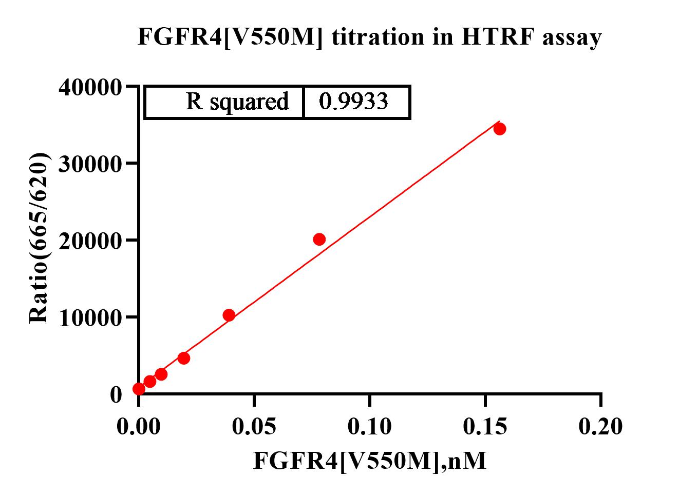 Description:Recombinant human FGFR4[V550M] protein with N-terminal GST tag was purified by GST affinity and followed by SEC chromatography. The FGFR4[V550M] protein showed high activity in HTRF assay.