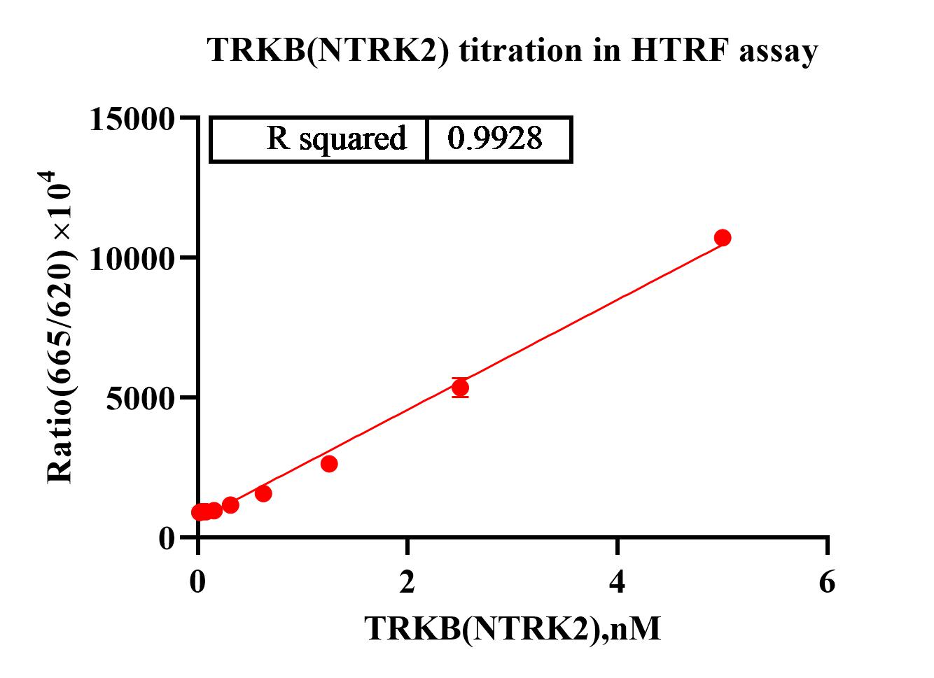 Activity Identification:The TRKB activity was detected using HTRF technology. The reaction was performed by incubating the TRKB protein , ATP and substrate at 25℃ for 60 min, adding the beads at 25℃ for 60 min, then reading ratio 665/620 with BMG.