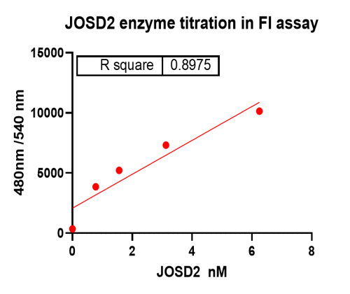 Activity Identification:The JosD2 activity was quantified using a FI-based assay. The reaction was performed by incubating the JosD2 protein and substrate at 25℃ for 60 min, finally measuring luminescence signal on BMG.