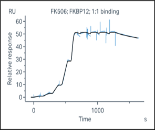 Activity Identification:The FKBP12 activity was quantified using SPR-based assay. The FKBP12 protein was immobilized onto the CM5 chip. The varying concentration of FK506 was injected, and flowed over onto the FKBP12 protein surface. And the response signal was recorded real time. The kinetics fitting was as follows with a kD value of ~1.05x10-8 M.