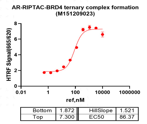 Activity Identification:The Biotin-ANDR(LBD) activity was quantified using a HTRF-based assay. The reaction was performed by incubating the Biotin-ANDR(LBD) protein and substrate, the donor and receptor at 25℃ for 60 min, then measuring the 665nm/620nm fluorescence signal ratio on BMG.