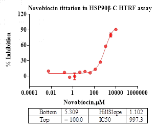 Activity Identification:The HSP90β activity was detected using HTRF technology. The reaction was performed by incubating the HSP90β protein, substrate and beads at 25℃ for 60 min, then reading ratio 665/620 with BMG.