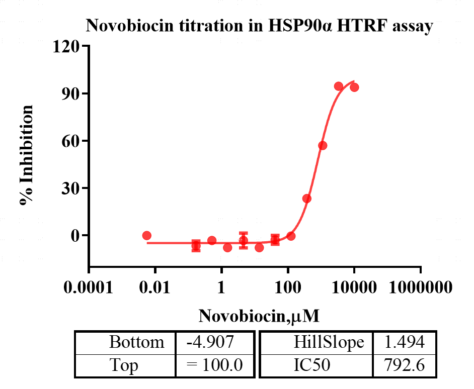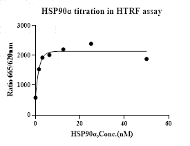 Activity Identification:The HSP90α activity was detected using HTRF technology. The reaction was performed by incubating the HSP90α protein, substrate and beads at 25℃ for 60 min, then reading ratio 665/620 with BMG.