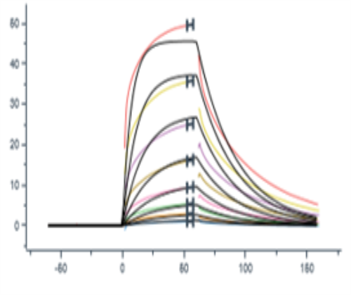 Activity Identification:The CD16a[F176V] activity was detected using SPR technology. The CD16a[F176V] protein was captured onto the CM5 chip with Anti-His antibody. The varying concentration of Cetuximab was injected onto the CD16a[F176V] protein surface, and recorded the response signal. The kinetics fitting was as follows with a kD value of ~ 3x10-7 M.