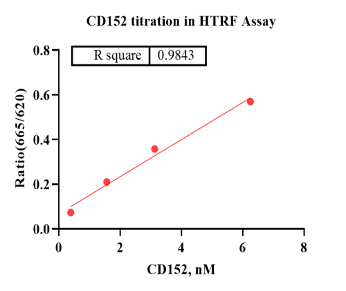 Activity Identification:The CD152 activity was detected using HTRF technology. The reaction was performed by incubating the CD152 protein and substrate, adding the beads and keeping the mixture at 25℃ for 60 min, then reading ratio 665/620 with BMG.