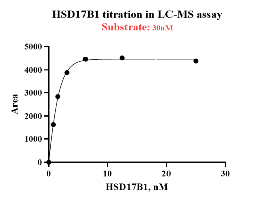Activity Identification:The HSD17B1 activity was detected using Liquid Chromatography Mass Spectrometry technology. The reaction was performed by incubating the HSD17B1 protein, NADPH and substrate at 25℃ for 120 min, then analyze the peak area of the reaction products using MassLynx.
