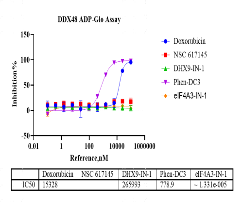 Activity Identification:The DDX48 activity was quantified using the ADP-Glo™ assay. The reaction was performed by incubating the DDX48 protein, ATP and substrate at 25℃ for 60 min, adding ADP-Glo reagent and then measuring luminescence signal on BMG.