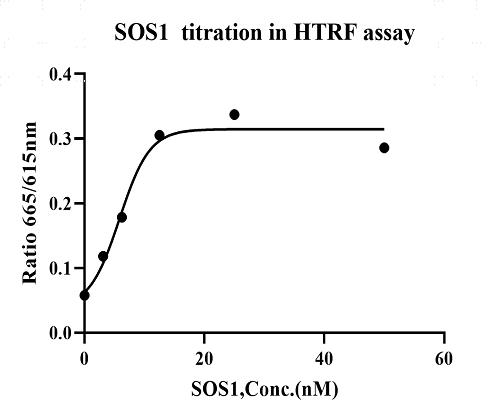 Activity Identification:The SOS1 activity was detected using HTRF technology. The reaction was performed by incubating the SOS1 protein, KRAS[G12C] and the beads at 25℃ for 60 min, then reading ratio 665/620 with BMG.